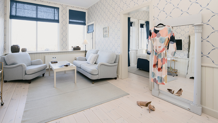 We have reduced the number of rooms slightly, in order to make all bedrooms en suite and make room for some beautiful, spacious deluxe rooms and suites. So today we have 23 beautiful rooms decorated in the best Gustavian style, most offering views of Lake Hornbæk and the sea. We are delighted to welcome you to Hornbæk and our beautiful seaside hotel in North Sealand.